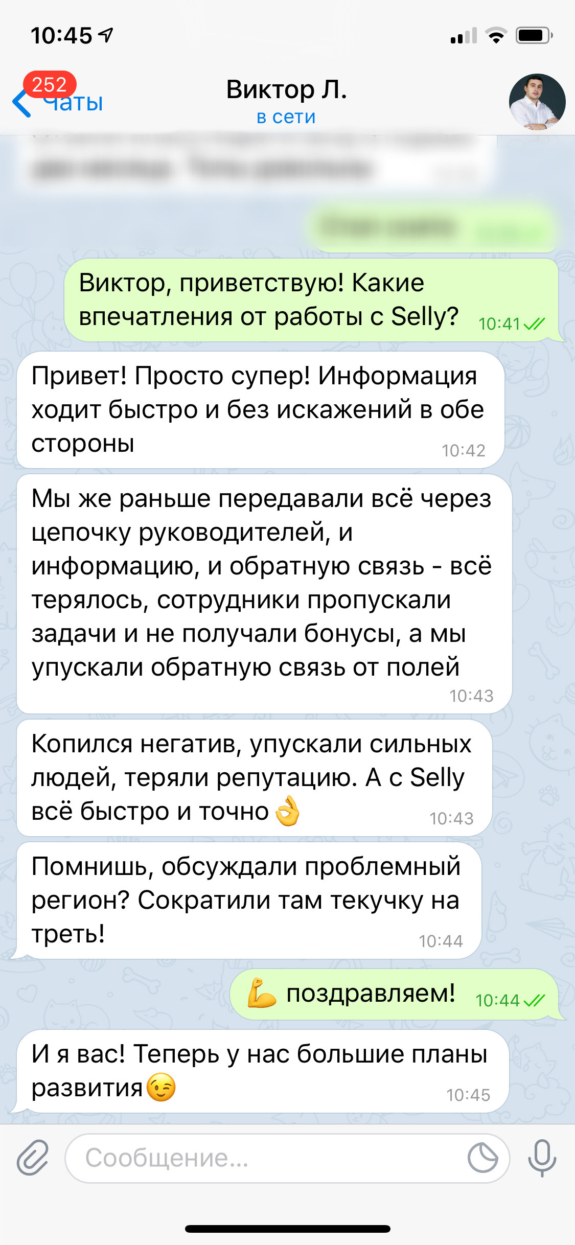 Наша специализация — крупные FMCG компании. Как правило, с заемным персоналом: торговыми представителями, мерчендайзерами, продавцами, консультантами, бренд-амбассадорами, ремонтниками, краудсорсерами и водителями. Selly позволит сократить затраты и повысить результативность взаимодействия с любой полевой структурой.